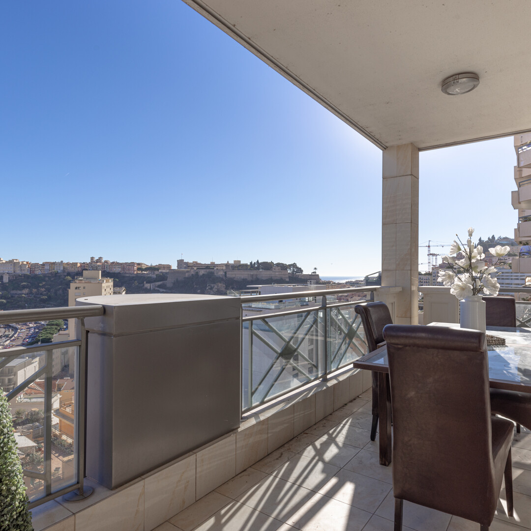 L'appartamento si affaccia sul porto di Monaco e offre una bella vista sul mare e sul Palazzo del Principe.