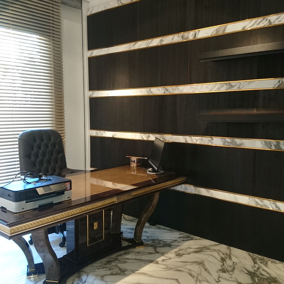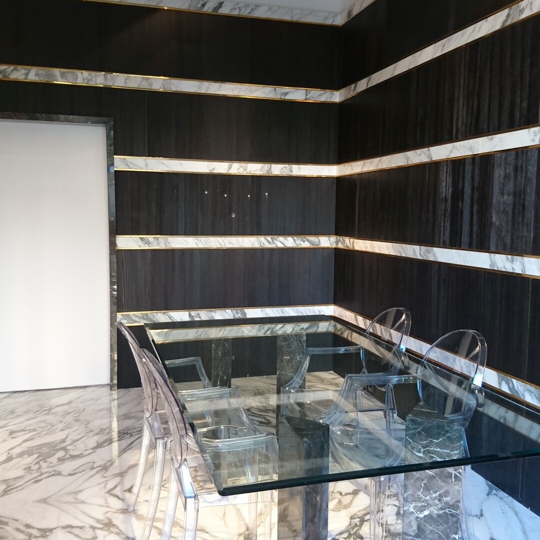 L'interno è elegantemente rifinito con dettagli in marmo, che contribuiscono a creare un ambiente prestigioso. Lo spazio comprende anche un bagno di servizio, un comodo ripostiglio e un ripostiglio.