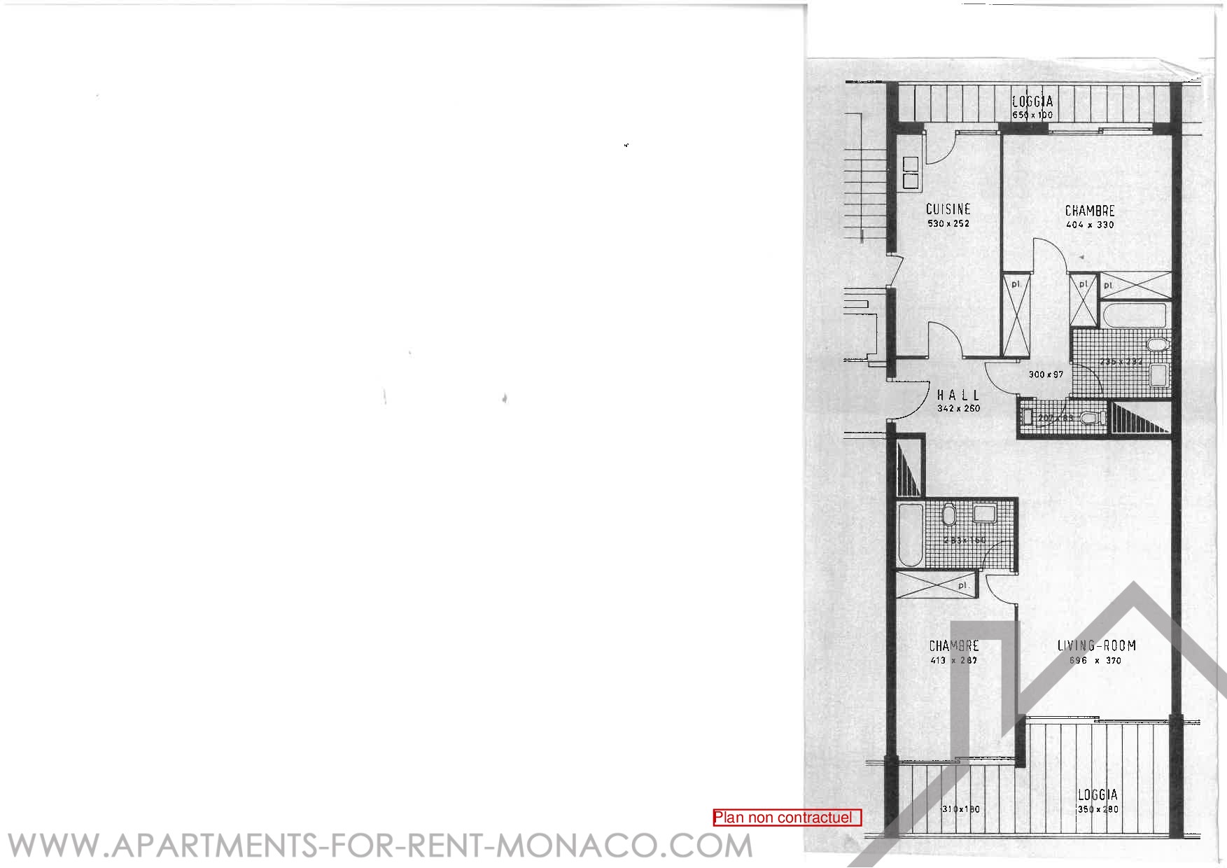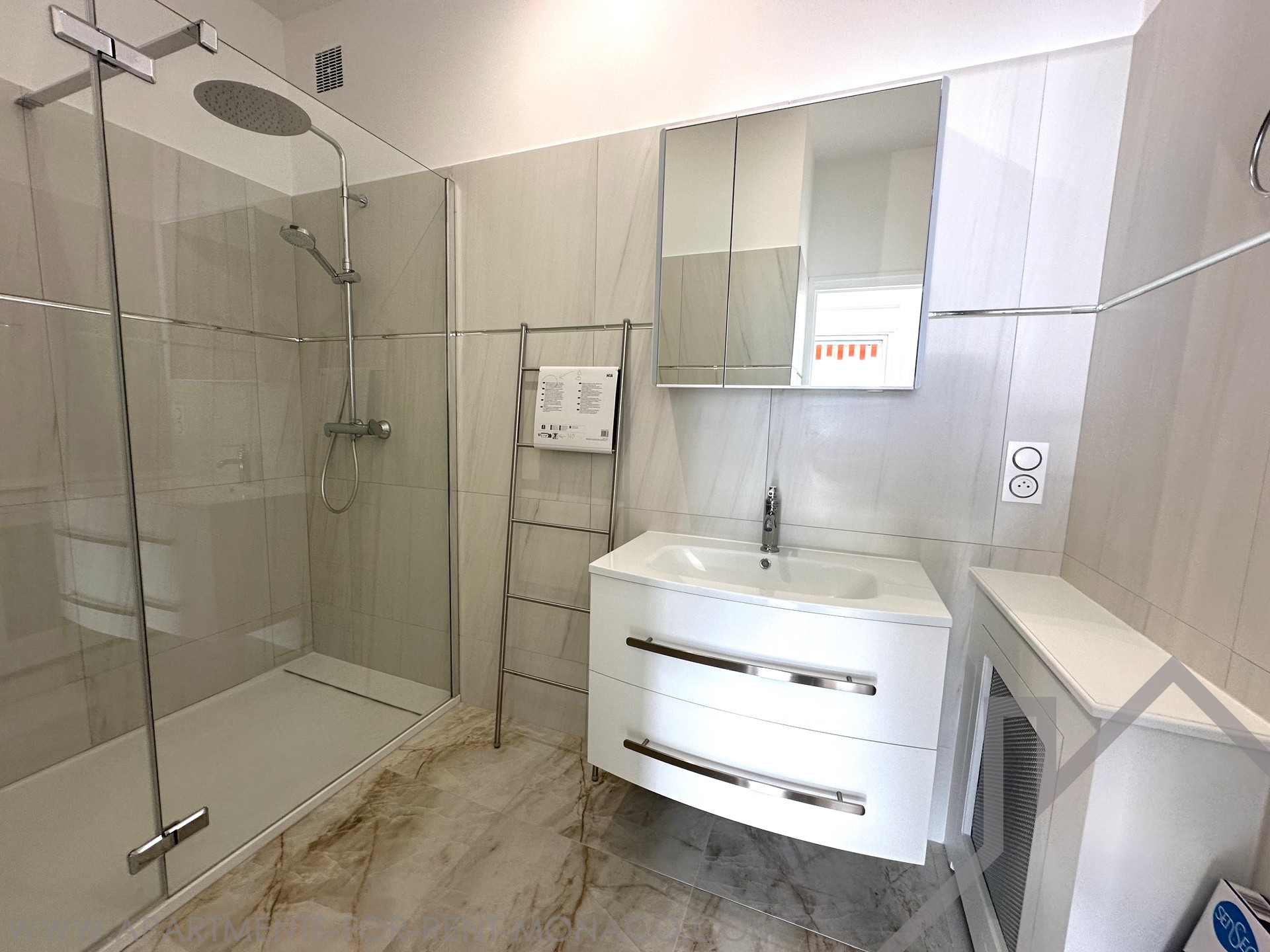 Un appartamento di 3 stanze al 24° piano composto da un ingresso, un soggiorno che si apre su una loggia con vista sul mare, una cucina, 2 bellissime camere da letto, un bagno e una doccia, un bagno separato.