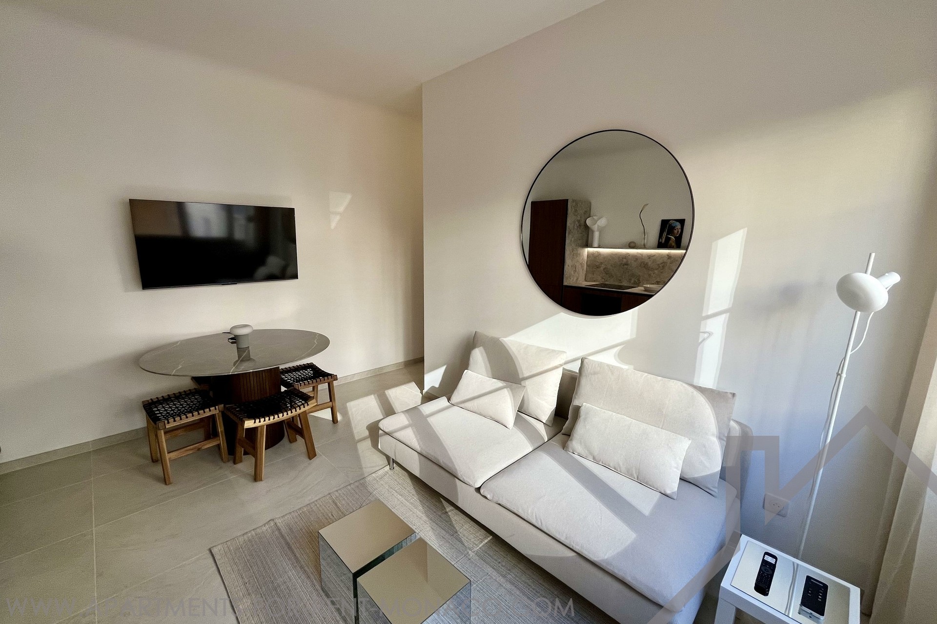 Bilocale ristrutturato e ammobiliato con gusto in una strada tranquilla a pochi passi dalle spiagge del Larvotto e dal Boulevard d'Italie