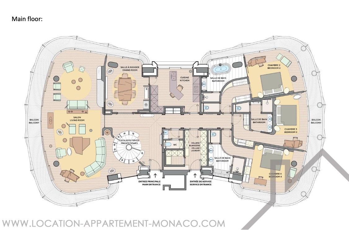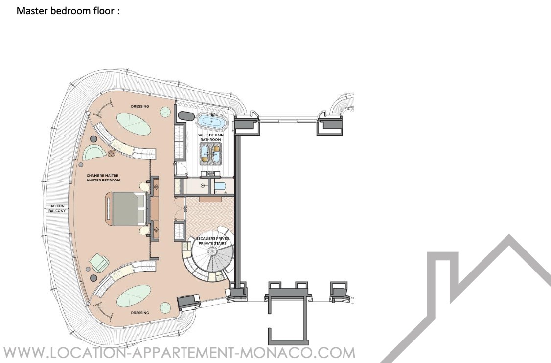 Questo magnifico duplex, situato nell'Edificio C, offre 410 m² di spazio abitativo e dispone di balconi circostanti con splendide viste sulla Place du Casino e sul mare.