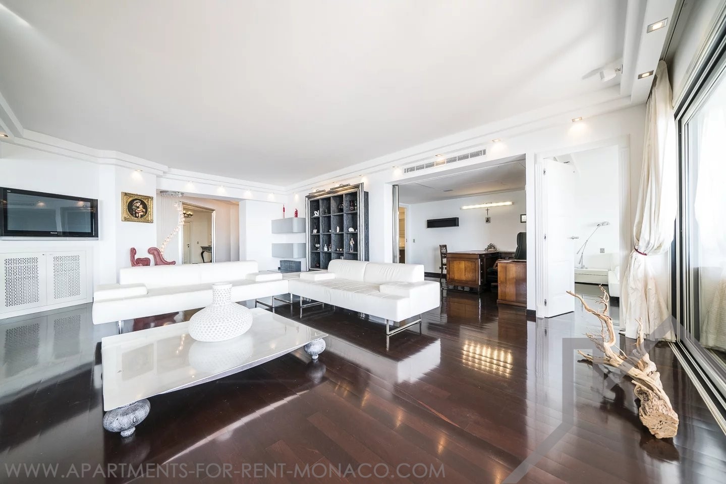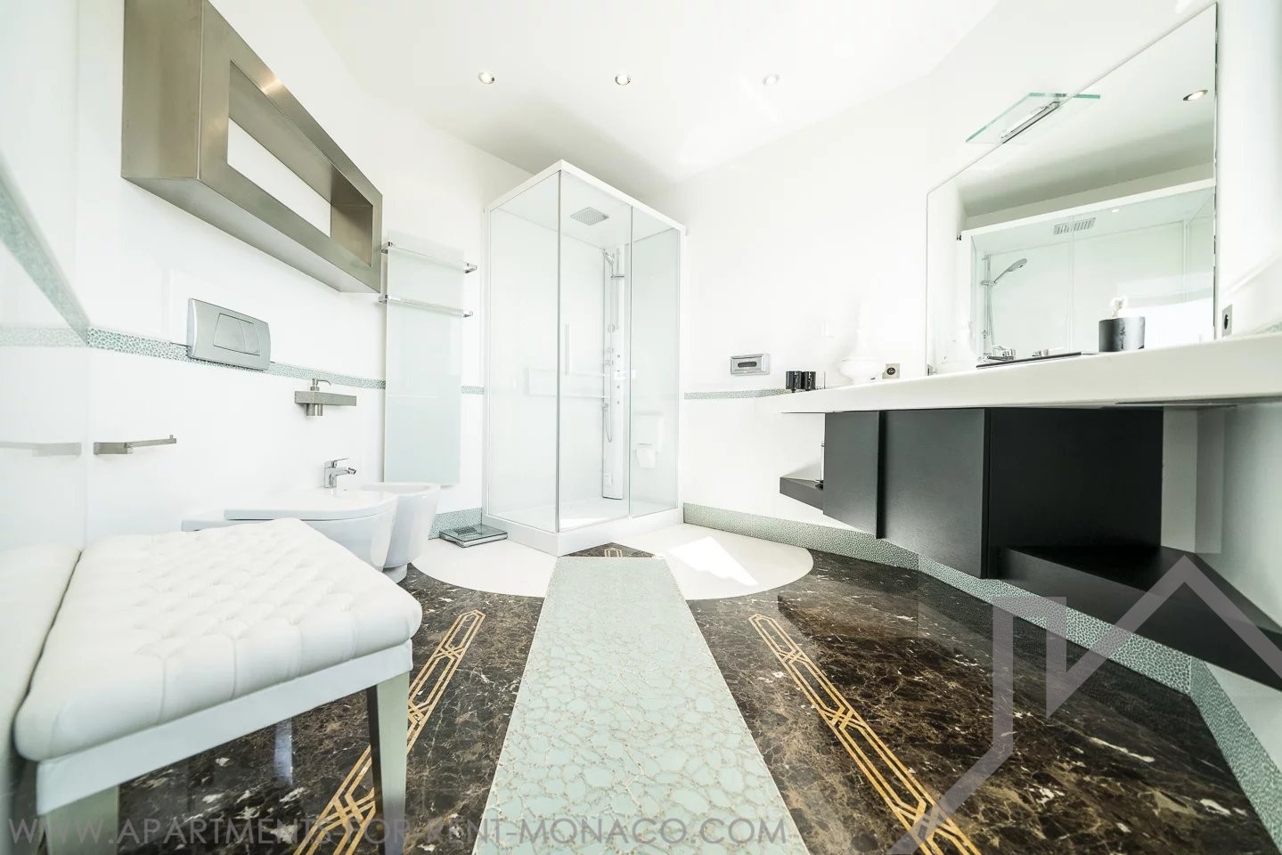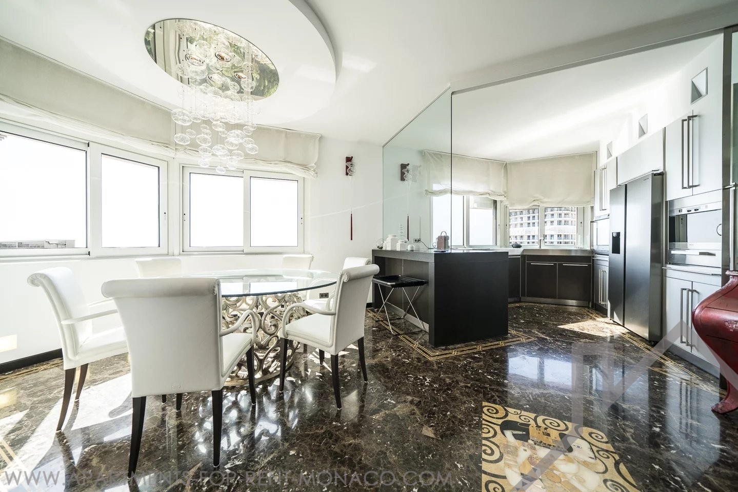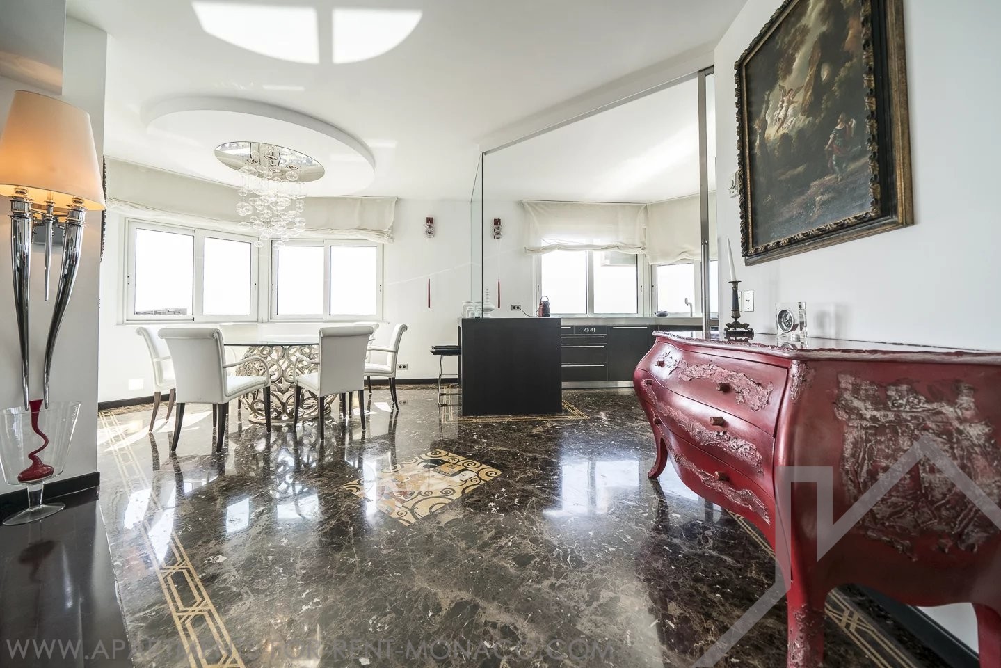 Situato al 15° piano ed esposto a est, gode di una vista panoramica sul mare, sul Country Club e sul Monte Carlo Beach. È stato rinnovato con bellissimi materiali e arredamento di design.