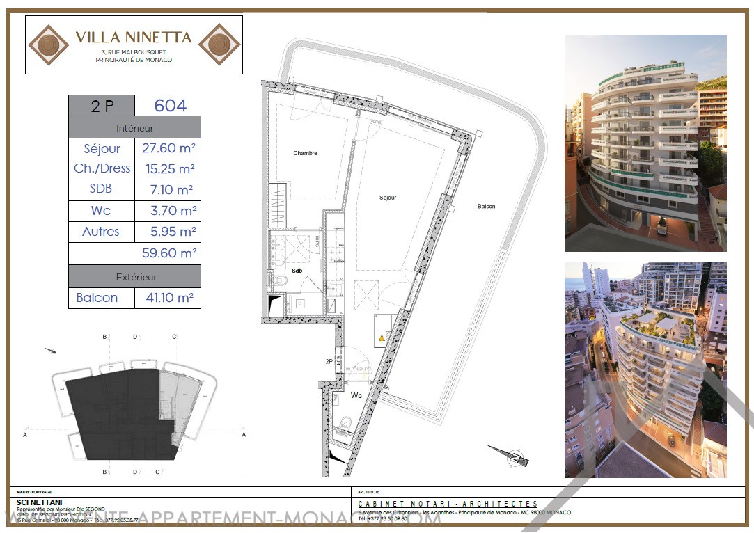 Superficie abitabile : 59.6 m²