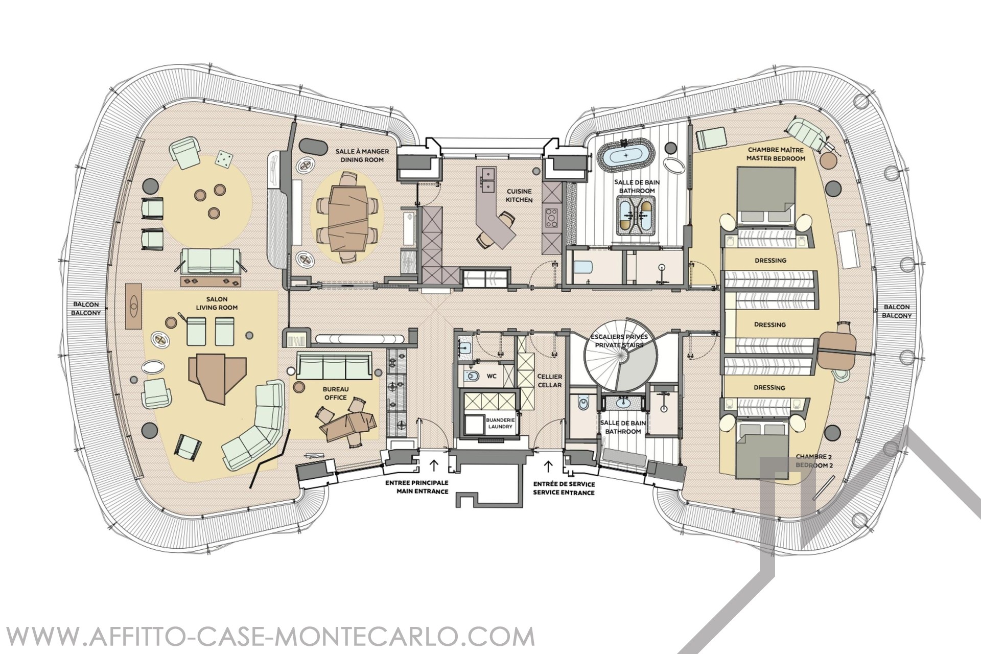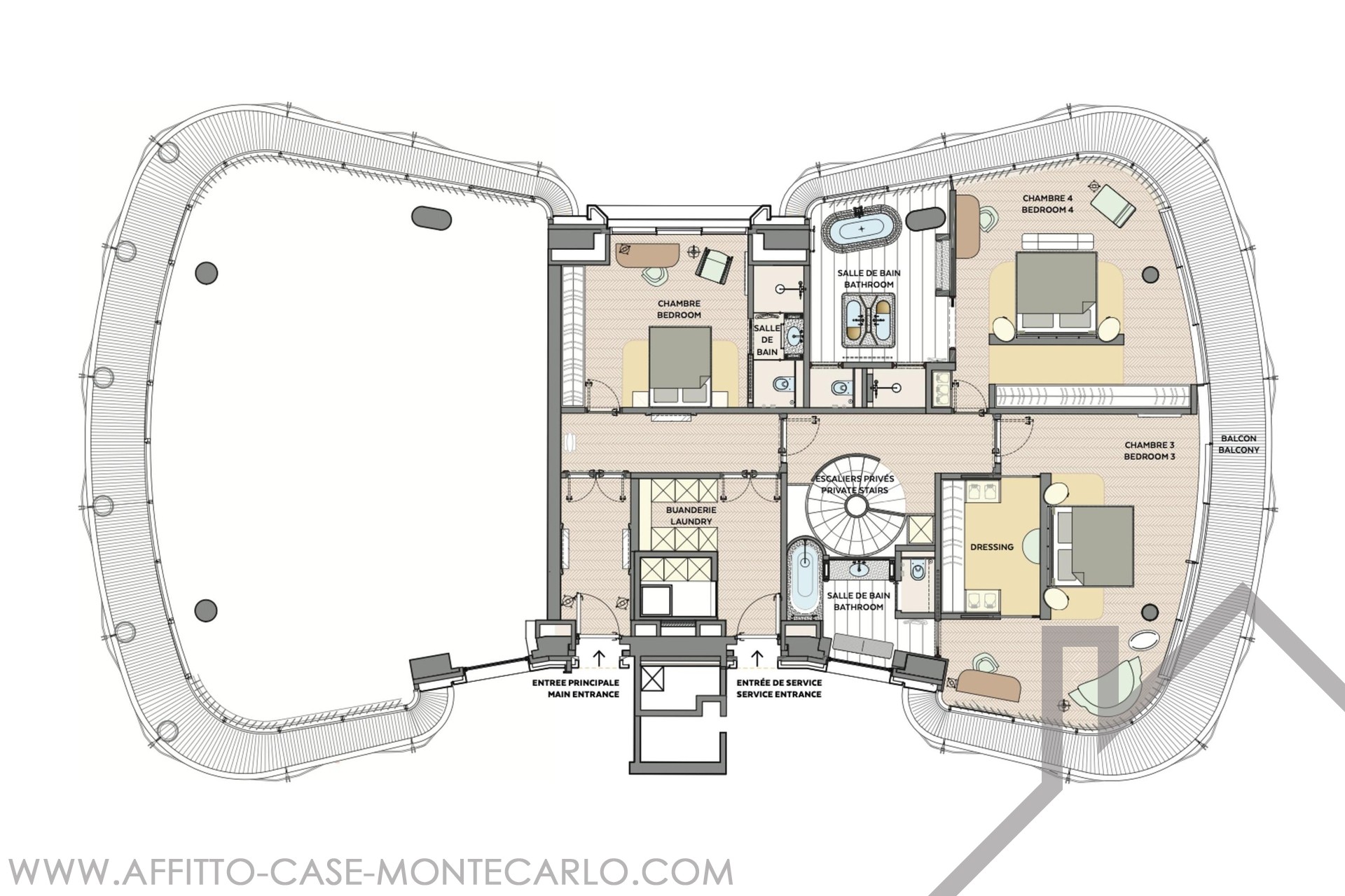 Il canone comprende le spese condominiali, l’elettricità, l’acqua e un servizio di portineria e valet 24 ore su 24.