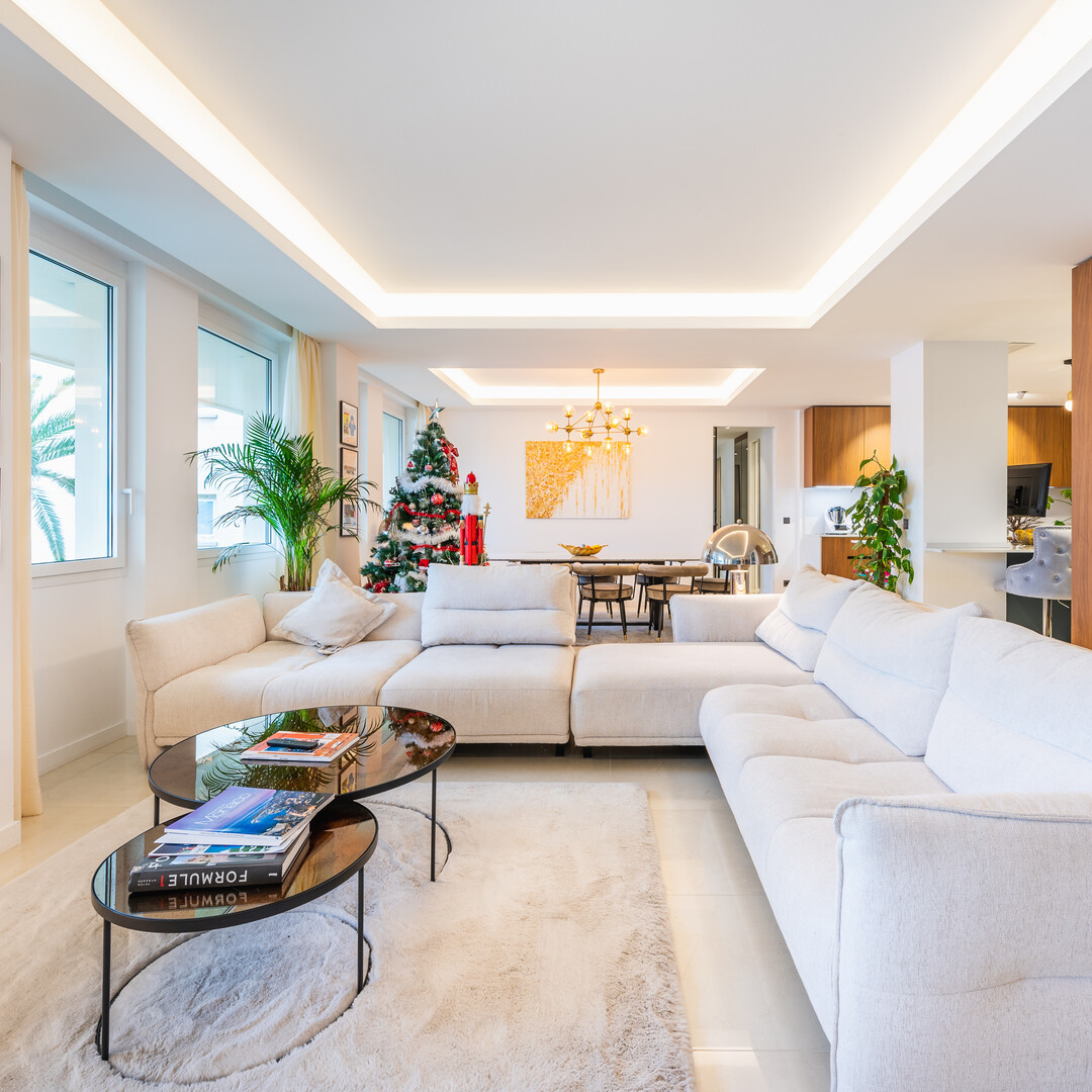 Situato su Port Hercule, la prima linea del Gran Premio di F1, in un edificio con concierge, magnifico appartamento completamente ristrutturato con materiali di qualità, composto da atrio, bagno per gli ospiti, soggiorno, sala da pranzo, magnifica cucina completamente attrezzata, lavanderia, camera da letto padronale con camerino e bagno completo, altre 3 camere con armadio, una con bagno completo, doccia, bagno per gli ospiti, aria condizionata.