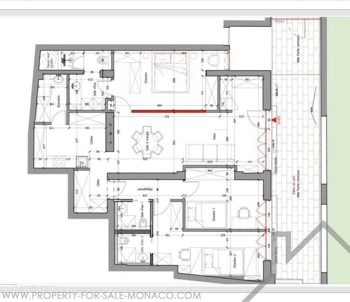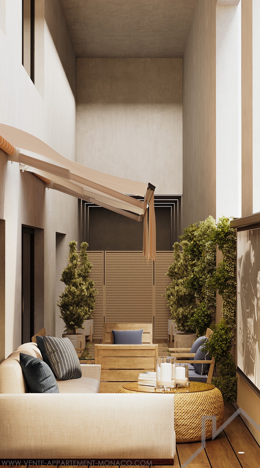 L'appartamento ha un ingresso privato che si apre su un piacevole cortile sicuro. È composto da un ampio soggiorno con sala da pranzo, due camere da letto con possibilità di un terzo, tre bagni, oltre a una cucina americana completamente attrezzata aperta sul soggiorno. Una lavanderia e un ampio spazio di stoccaggio completano la disposizione interna.