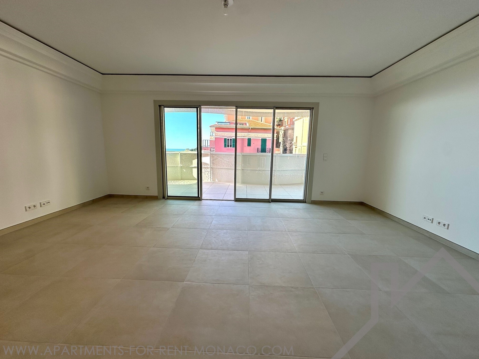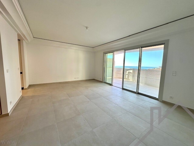 un atrio d'ingresso con deposito, un grande soggiorno luminoso che si apre su una terrazza con vista sul mare, una cucina completamente attrezzata e un bagno separato.