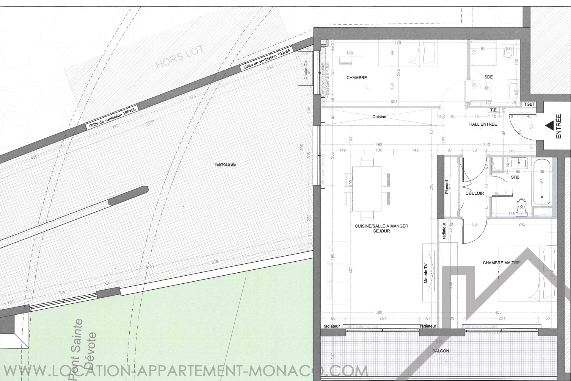 Questo bellissimo appartamento di 3 stanze, completamente ristrutturato, comprende un ingresso, un piacevole soggiorno con cucina americana completamente attrezzata, che si apre su una terrazza di 67 m² e un balcone di 11 m², offre splendidi spazi esterni ideali per pasti in famiglia, momenti di relax o intrattenimenti, due camere da letto ciascuna con il proprio bagno, e dispone di aria condizionata, offrendo così un luogo confortevole in cui vivere.