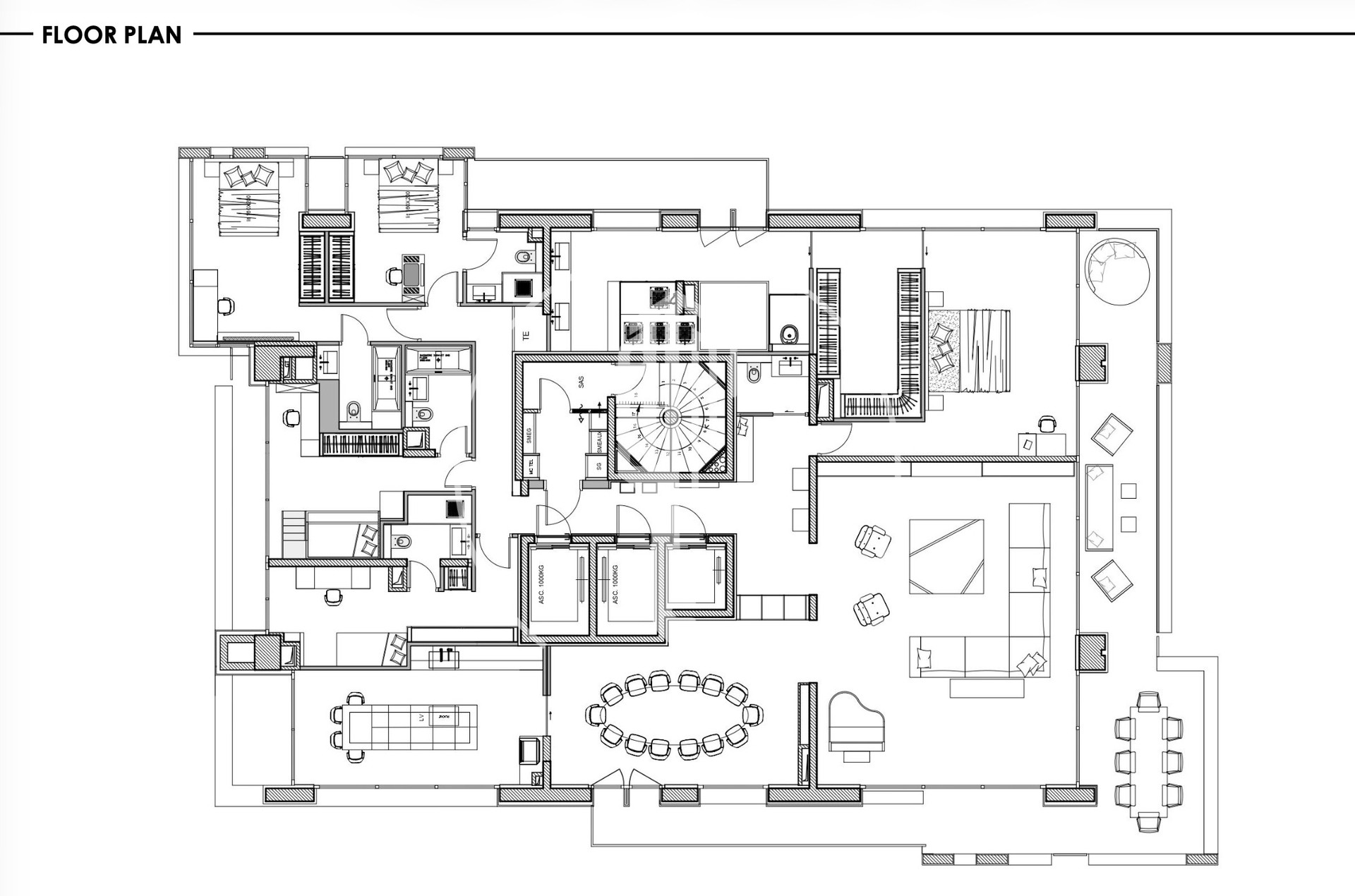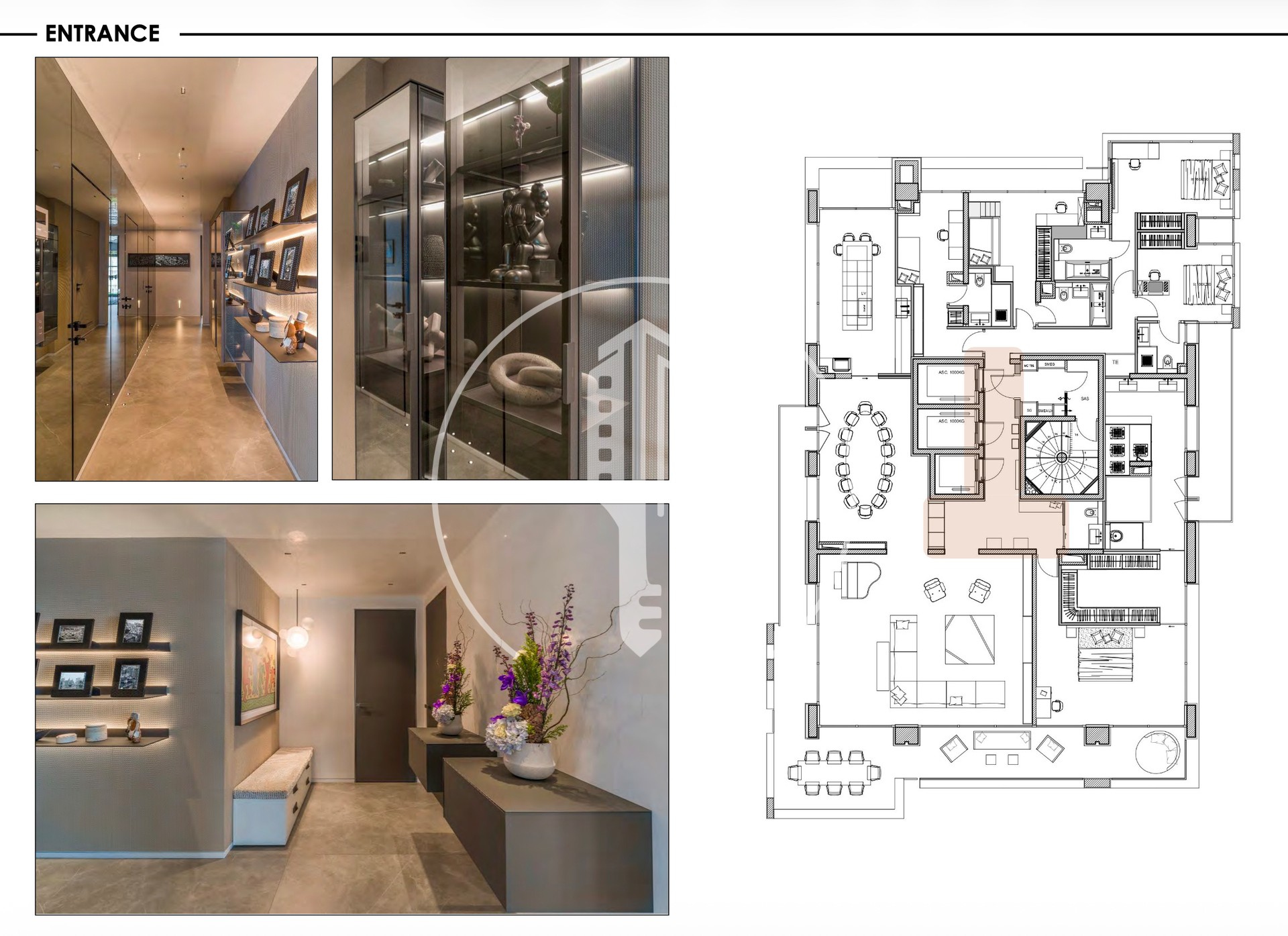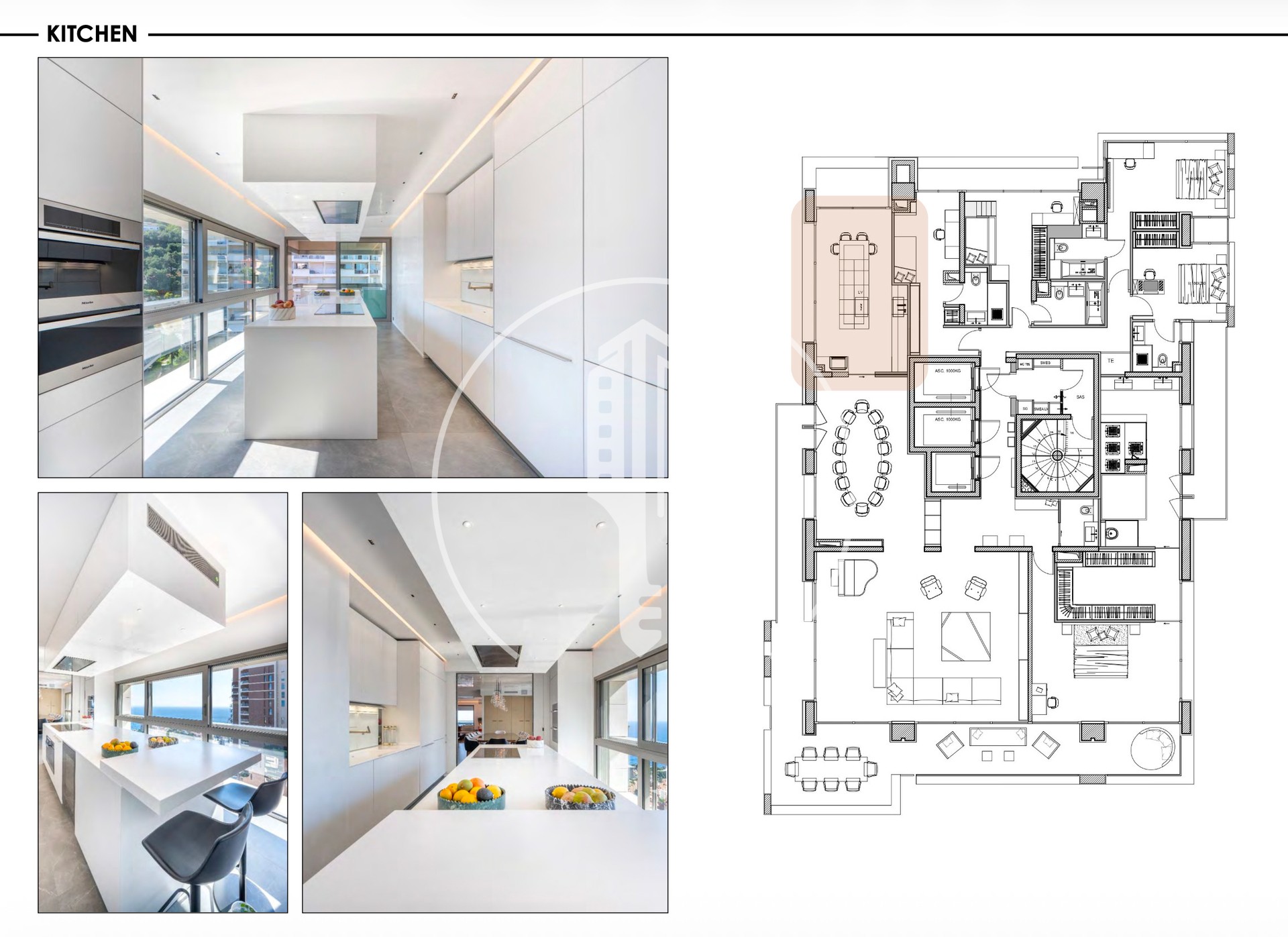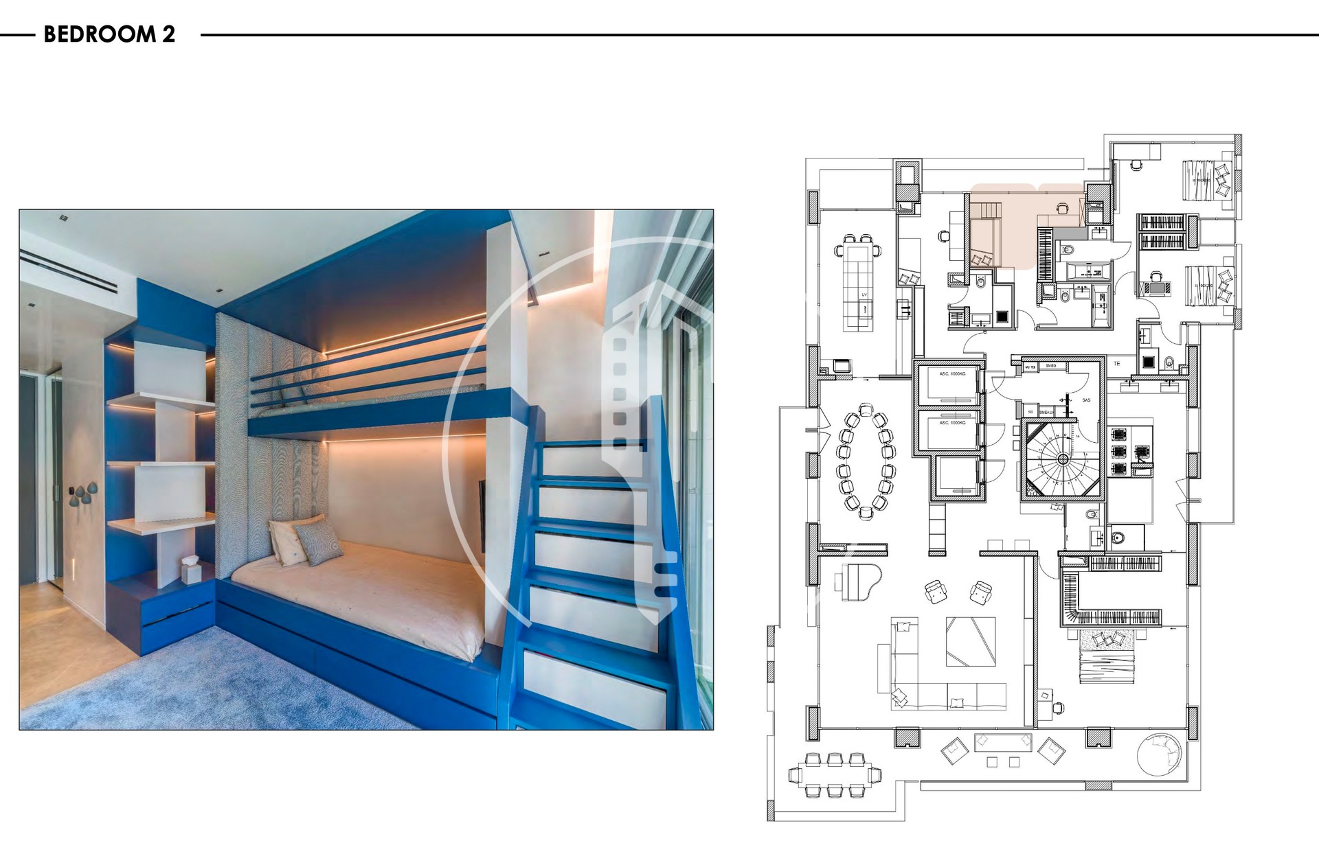 L'appartamento ha 5 camere da letto, ognuna con il proprio bagno privato. La camera da letto principale si apre su una grande terrazza e include un home cinema, un camerino doppio e una spa con jacuzzi.