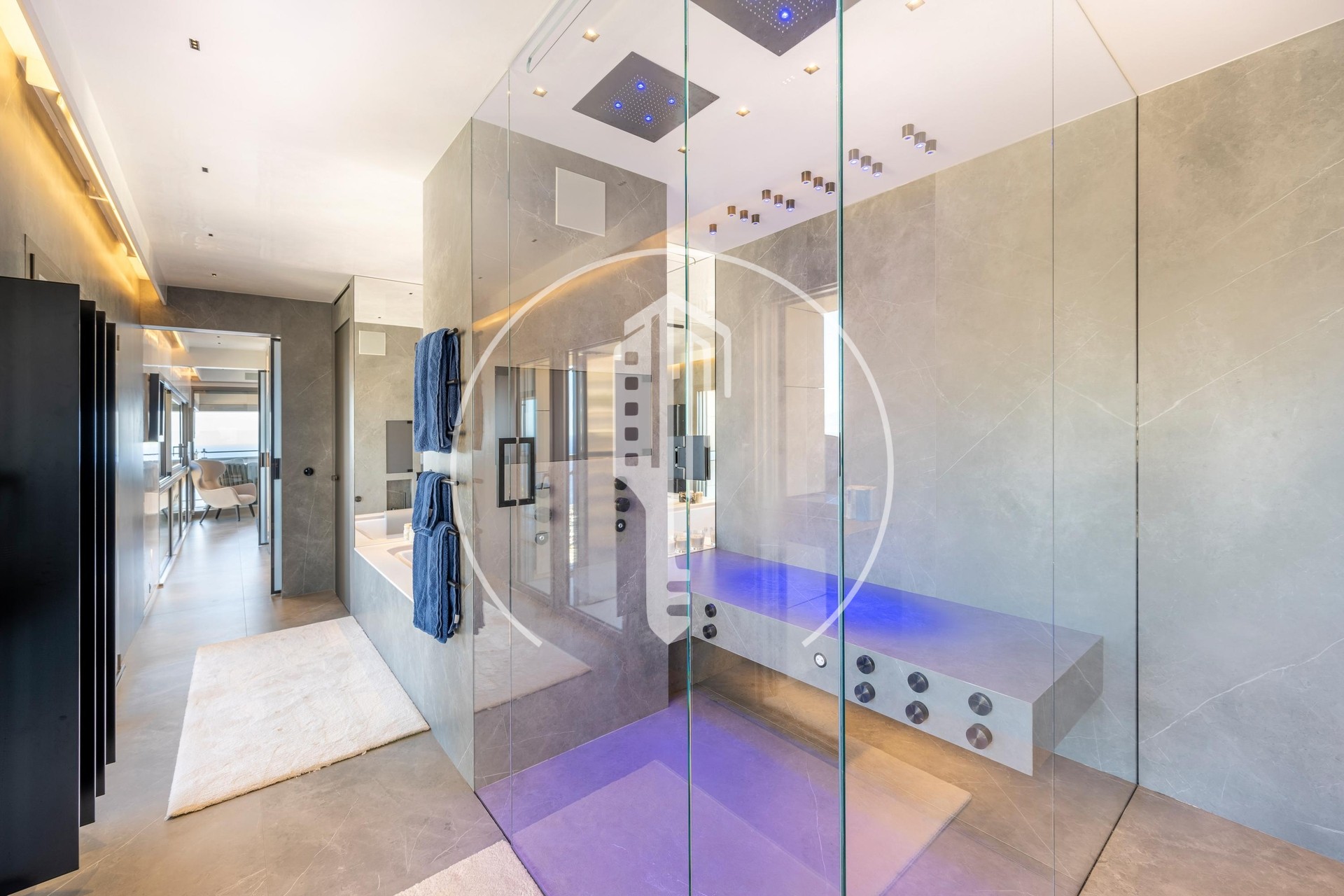 L’appartamento comprende 5 camere da letto, ciascuna con bagno en suite. La suite padronale si apre su un’ampia terrazza e dispone di un home cinema, due cabine armadio e un’area benessere con jacuzzi. La zona giorno comprende un ampio soggiorno, una sala da pranzo e una cucina spaziosa e funzionale.