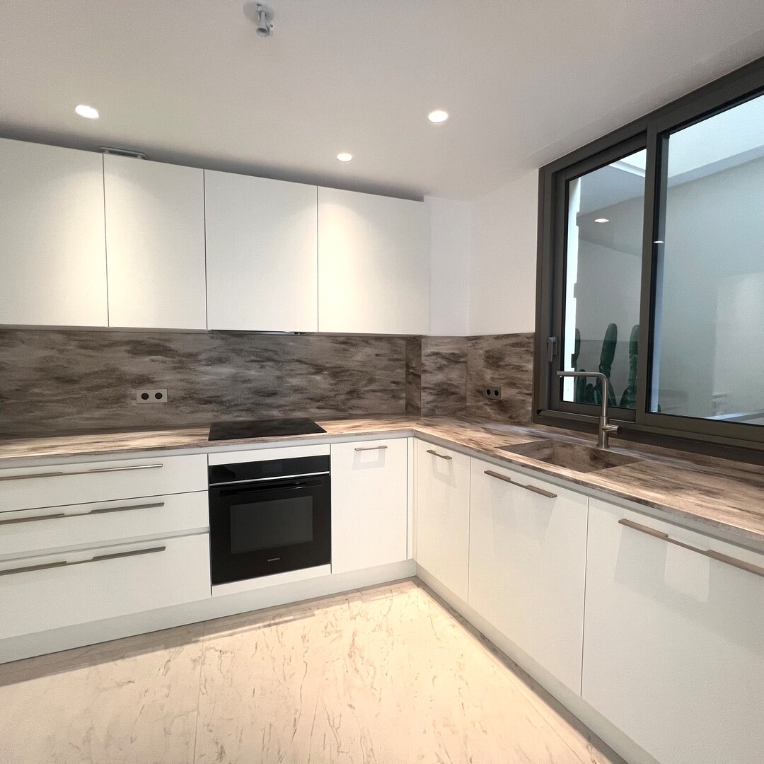 È composto da un ingresso, un soggiorno che si affaccia sulla terrazza, una cucina completamente attrezzata con lavanderia annessa, una camera da letto principale con cabina armadio, un piccolo balcone e un bagno completo, una seconda camera da letto con bagno con doccia, oltre a un WC separato. Le camere dispongono di numerosi spazi di stivaggio integrati.